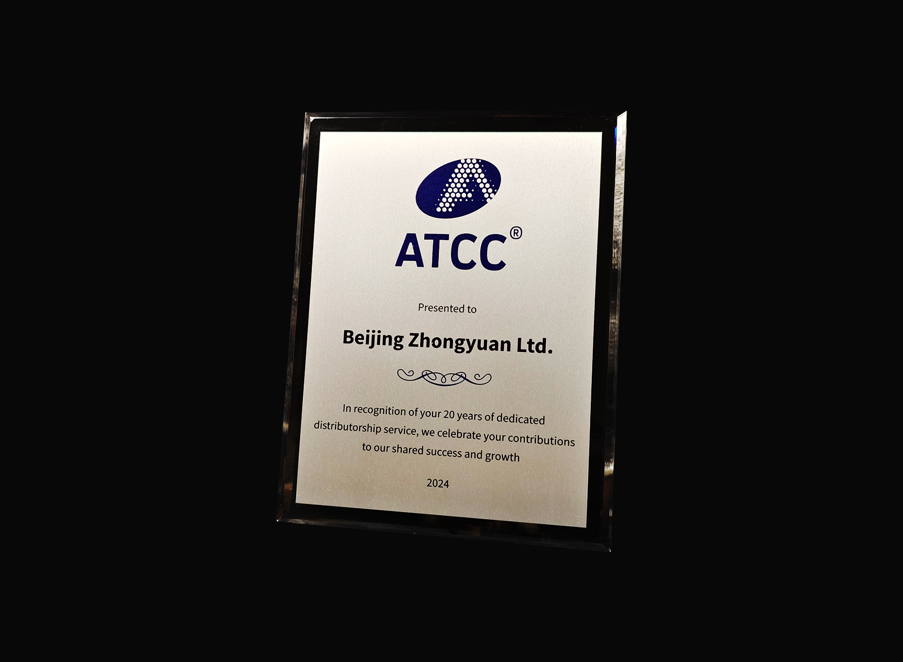 中源公司获ATCC合作二十载纪念奖牌