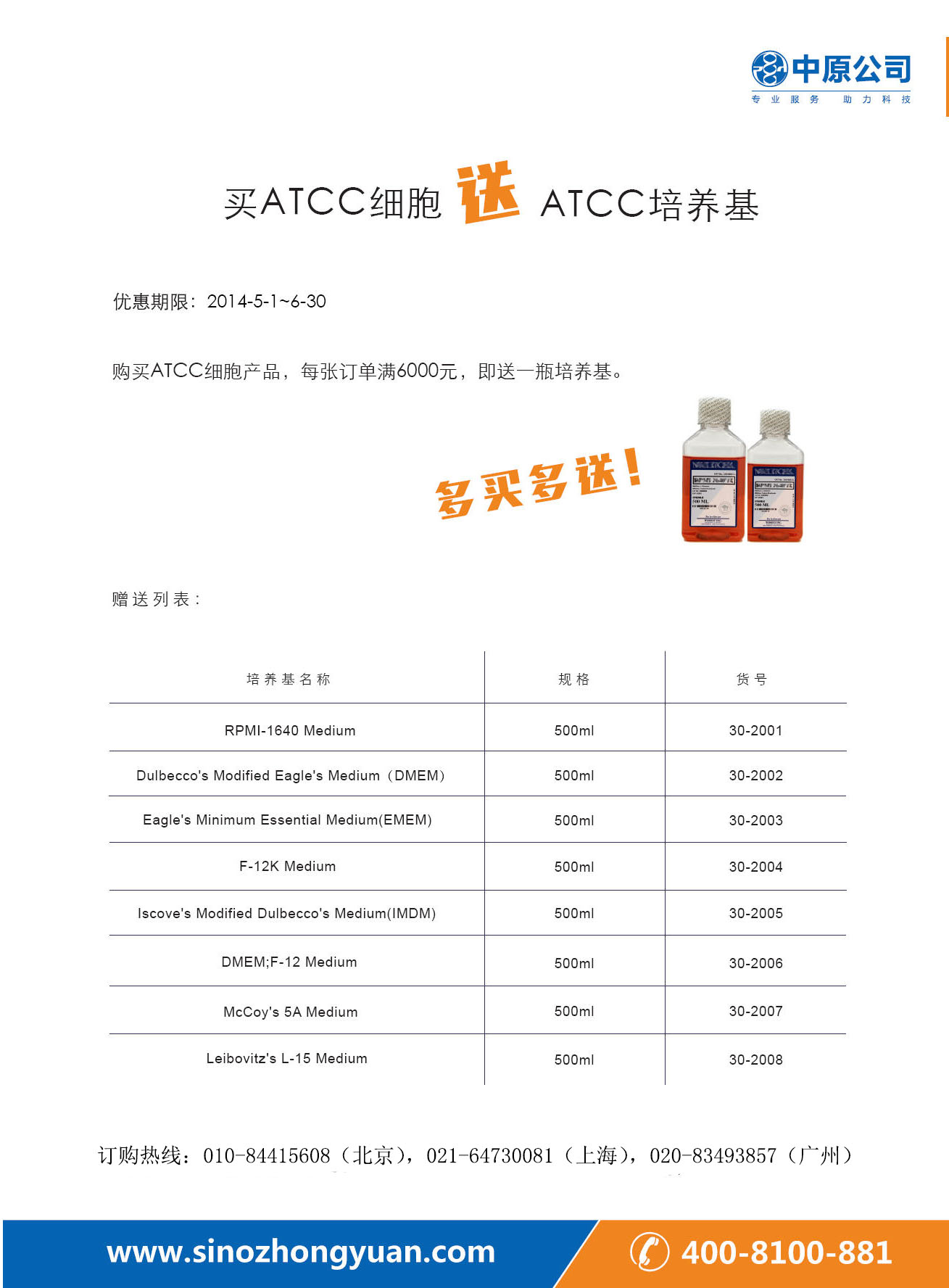 买ATCC细胞 送ATCC培养基!2014-04-30 16:19:00.0