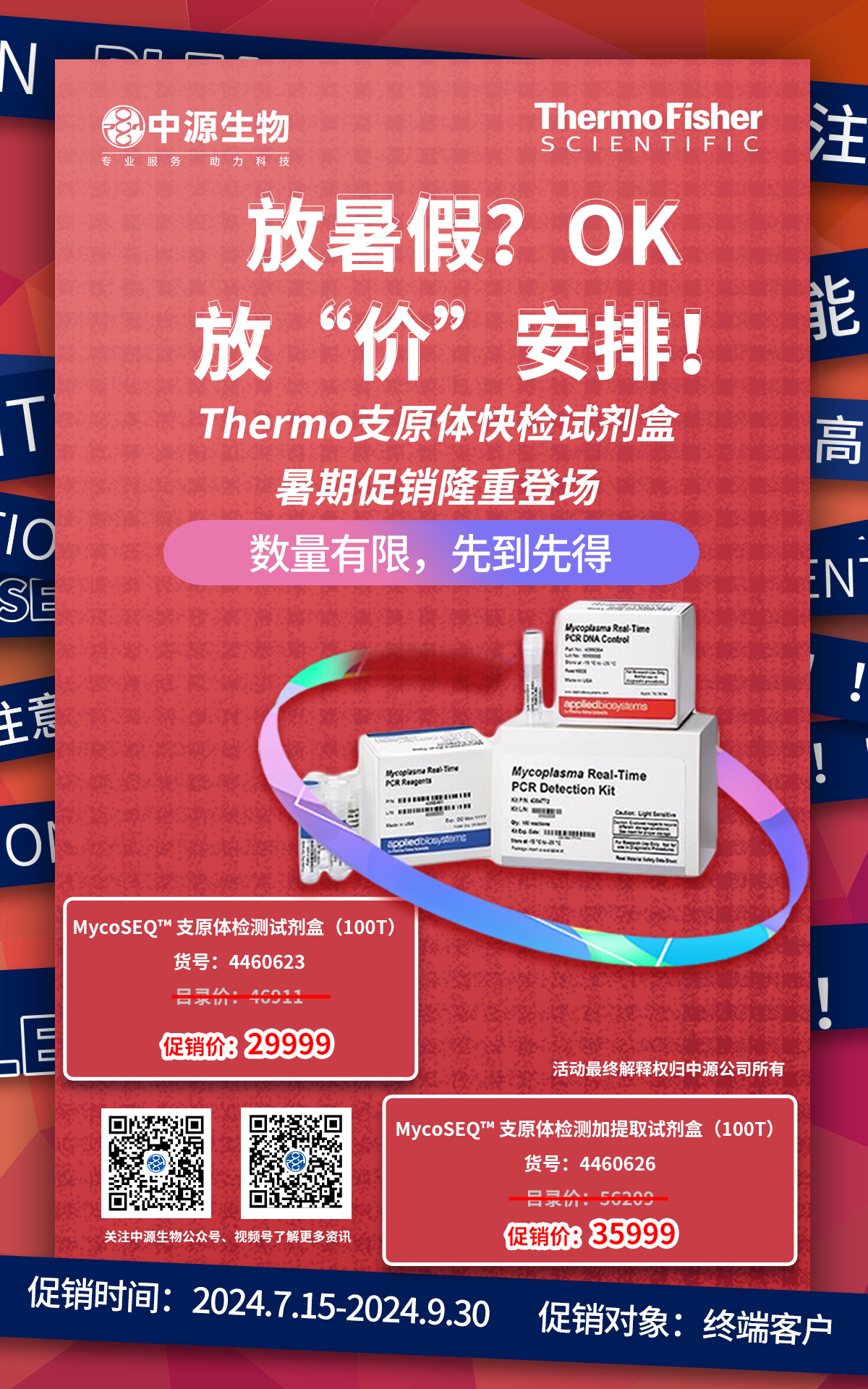 放暑假? OK 放“价”安排! 赛默飞支原体快检试剂盒 暑期促销隆重登场 促销时间 2024.7...2024-07-17 13:33:00.0