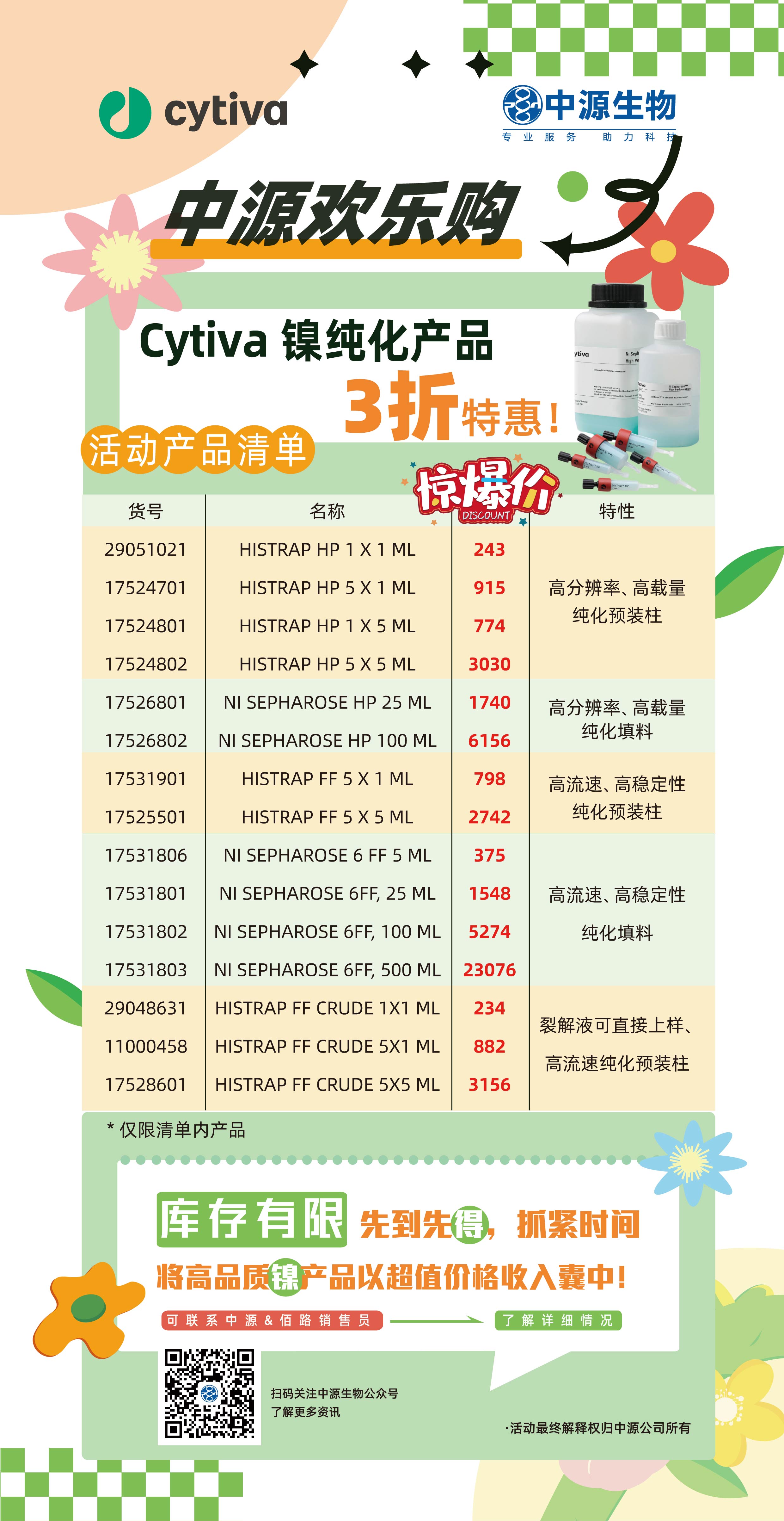 中源欢乐购|Cytiva His标签纯化柱和填料3折特惠!