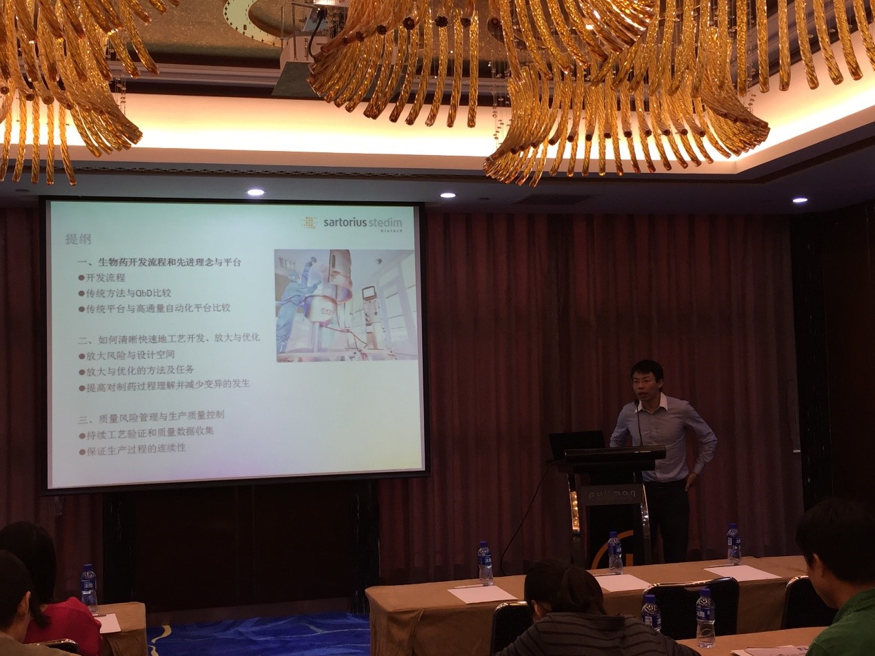 百泰生物,北京步长,成大天和,凯因,康乐卫士,民海,三元基因,北京生物制品研究所,泰德制药,天广实,天坛生物,正旦国际,智飞绿竹,甘李药业,金普诺安,精益泰翔,天津天士力,中科生物等多家生物制药领先企业及科研单位参加了本次研讨会。会议由中原公司工业部经理何耀强主持,中原公司业务总经理李景华到场并致词。Sartorius公司产品应用专家赵伟,BD高级生物工艺产品北区销售主管张佩瑜,Sciex 技术专家高铁,ThermoFisher 公司Gibco产品技术专家王颖,Filtrox公司营销总监何群,TELSTAR公司中国区销售经理康瑜,中原公司首席科学家朱希灿等先后做了精彩的主题演讲。