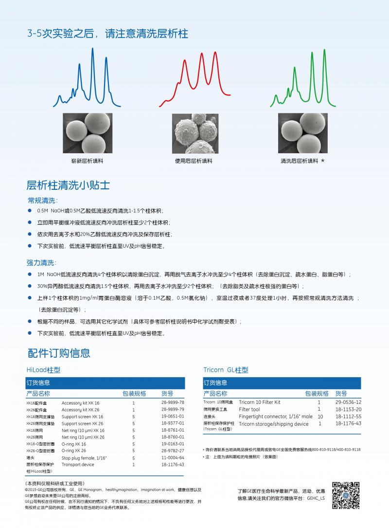 凝胶过滤预装柱维护保养卡 HiLoad及Tricorn GL柱型