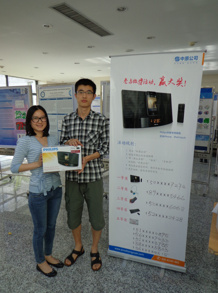 中原公司作为此次大会的主赞助商并设展。在现场,球友会平台(中国)通过微博(@中原公司)进行了抽奖活动,每一位参会的师生都踊跃参与。通过现场抽奖的形式球友会平台(中国)抽取了4个大奖和5个幸运奖,没有中奖的同学也都获得了一份精美礼品。