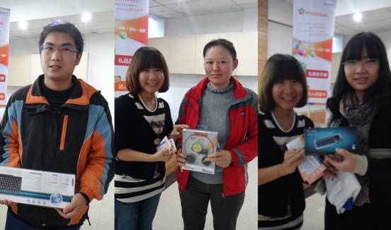 中原公司研究生交流论坛的一个重要环节,就是最激动人心的抽奖环节,除了每一位到场的老师和同学都能获得疯狂的小鸟一只外,球友会平台(中国)还现场抽取了三套愤怒小鸟公仔,迷你键鼠,无线音乐耳机和无线键鼠套装三个大奖,恭喜如下获得大奖的六位幸运儿
