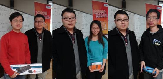 中原公司研究生交流论坛的一个重要环节,就是最激动人心的抽奖环节,除了每一位到场的老师和同学都能获得疯狂的小鸟一只外,球友会平台(中国)还现场抽取了迷你键鼠,无线音乐耳机和无线键鼠套装三个大奖,恭喜如下获得大奖的三位幸运儿: