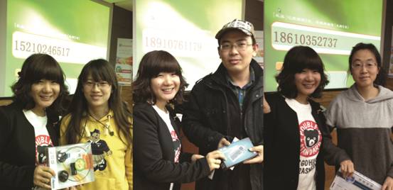 讲座最后,依然是球友会平台(中国)最激动人心的抽奖环节。每一位到场的老师和同学都获得一副精致的中原生物扑克牌,此外,球友会平台(中国)还现场抽取了迷你键鼠,无线音乐耳机和无线键鼠套装三个大奖。恭喜如下获得大奖的三位幸运儿: