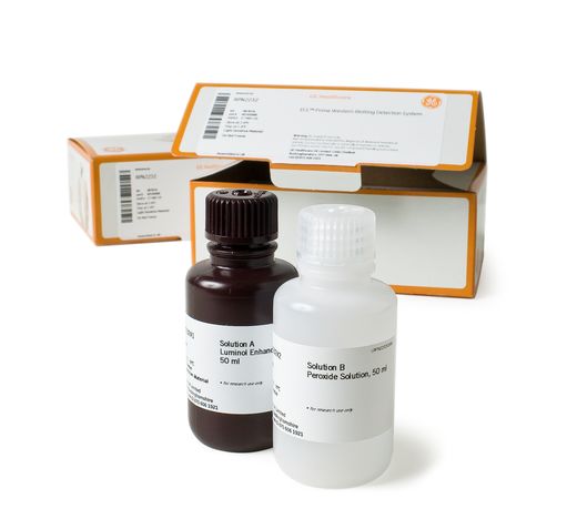 GE ECL采用鲁米诺(luminol)底物进行灵敏的检测,并且加入了增强剂,增加了酶活力,从而大幅提高了信号强度和持续时间,适用于现在所有常规的蛋白质印迹实验。