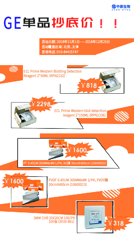 GE Healthcare的产品包括分子生物学试剂、电泳仪器、层析设备、层析介质、膜分离、分光光度计等,涵盖了从上游分子生物学到下游生物大分子分离纯化的全部过程。值此双十一之际,中原生物携手GE公司感恩回馈,全线75折,还有更多超低价产品等着您!