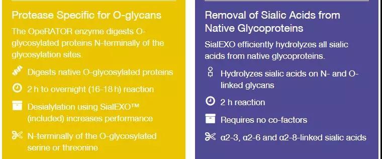 这样的O-糖位点切割酶是否对您的实验有帮助呢?球友会平台(中国)还提供配套的试剂盒,试剂盒中提供O-糖蛋白亲和柱,OpeRATOR和SialEXO,可柱上酶切并特异性回收O-糖肽段。