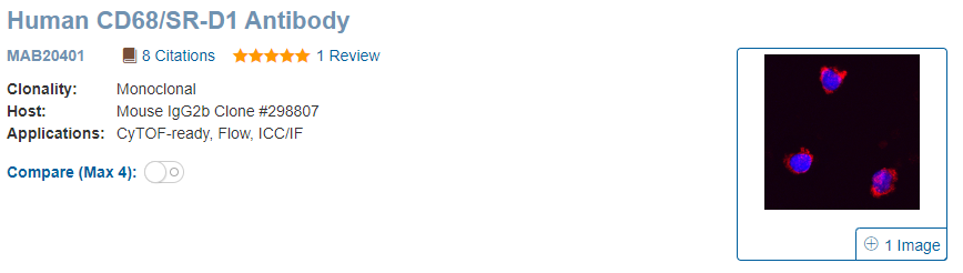 例如,巨噬细胞标志物 CD68(货号 MAB20401)抗体,应用栏中仅标出了 ICC/IF,虽然不能确定一种抗体在每一种组织中都有同样的表现,但球友会平台(中国)可以证明其对固定抗原的识别,所以也可应用于 IHC 实验。