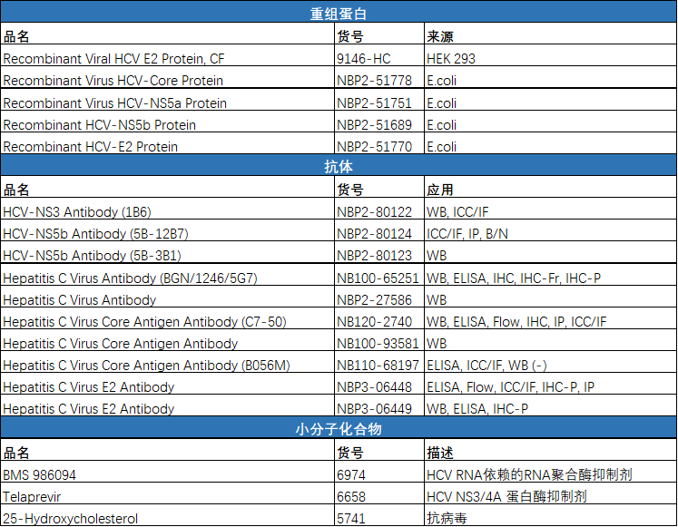 Bio-Techne 可提供 HCV 研究相关重组蛋白、抗体、小分子化合物