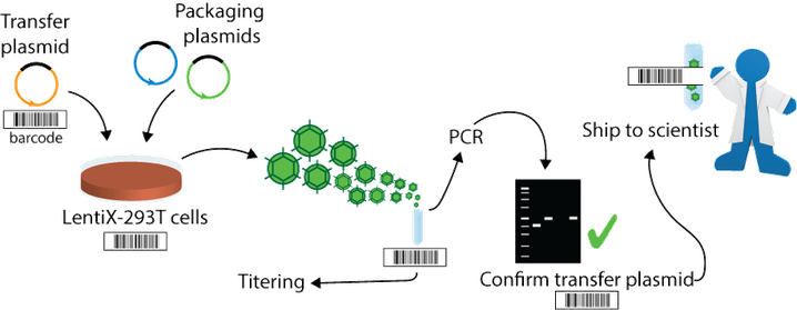 Addgene病毒是按照每个特定病毒已优化的标准方法生产的高质量产品。生产完成后,Addgene在分发所有的病毒前,都要进行滴度测定并完成质控检测。目前Addgene主要提供的是Lentivirus 慢病毒和AAV 腺相关病毒的一些产品。