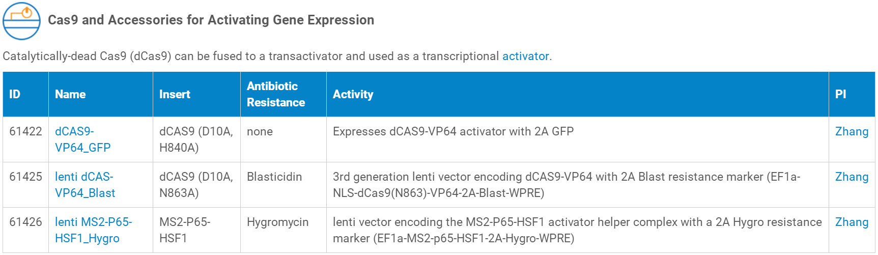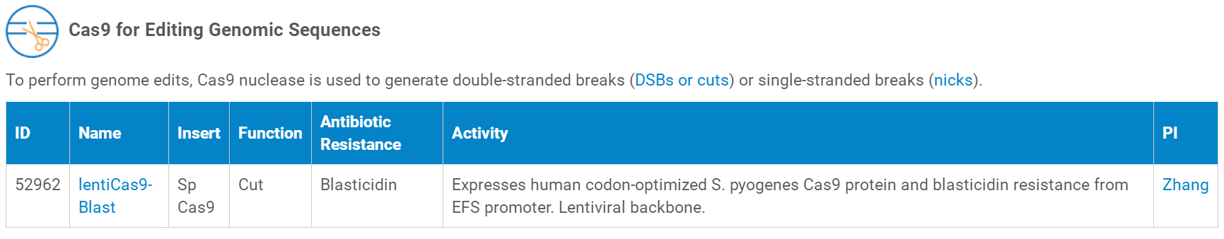 以下是目前可以提供的Cas9蛋白研究相关慢病毒对应的质粒,点击“Name”列即可进入质粒对应的慢病毒产品页面,从而可以查询慢病毒产品的价格、体积、滴度、运输形式、储存温度等信息。