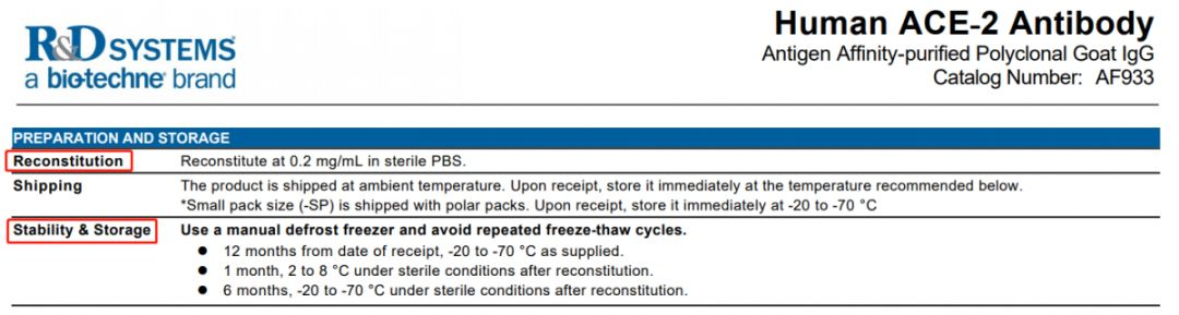以新型冠状病毒入侵人体门户的关键靶点 ACE-2 的抗体(货号:AF933)为例,予以说明: