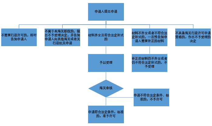直属海关收到申请人提出的特殊物品审批申请后,根据下列情况分别作出处理: